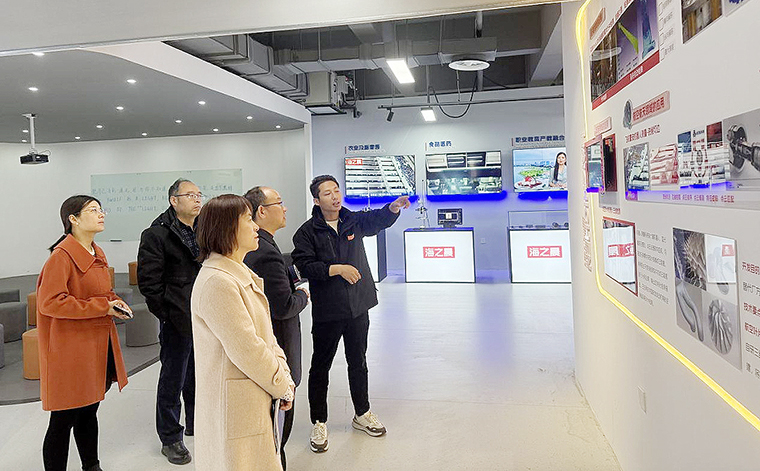在企业负责人的陪同下,孙守强一行首先参观了公司展厅,详细了解了海之晨的发展历程、核心产品矩阵以及在赋能教育领域的典型案例。通过实地考察,学院团队深入感知了企业在工业装备制造、机器视觉应用等方面的技术积累,以及企业在推动产教融合、助力高校人才培养方面的成功经验。