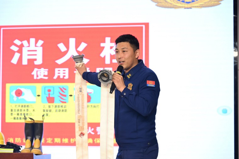 刘相林结合消防救援实战经验,以实验室安全事故典型案例为切入点,剖析实验室火灾隐患及应急处置要点,讲解消防法规、实验室防火灭火知识及危化品存放使用规范。实操环节中,他现场演示干粉灭火器、消防水带使用方法及逃生绳结制作技巧,针对酒精、电气设备等常见起火类型,明确应急处置流程和逃生自救技巧。