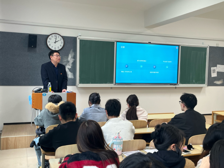 4月15日,青岛西海岸新区富春江路幼儿园韩梅主任走进2023级学前教育本科课堂,以《从校园到职场——就业选择与备考指南》为主题,围绕考研、考公考编、自主创业三大方向展开讲解,帮助学生明晰备考方向。