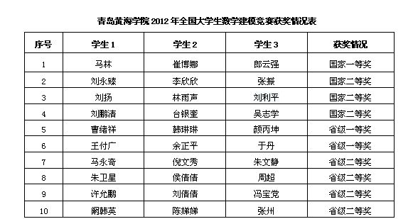 日前,2012年全国大学生数学建模竞赛成绩揭晓,我校荣获国家一等奖1项、国家二等奖3项、山东省一等奖2项,山东省二等奖4项。据悉,来自全国33个省、市、自治区(包括香港和澳门特区)及新加坡、美国的1284所院校、21219个队(其中本科组17741队、专科组3478队)、63600多名大学生报名参加本项竞赛。其中本次竞赛国家一等奖获奖率仅为1.26%, 国家二等奖获奖率为6.57%。我校在本届大赛中的获奖质量和数量均居山东省民办高校之首,在全国兄弟院校中位居前列,展示了我校在数学建模方面雄厚的实力。