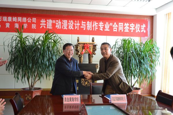 4月26日,焦奎院长代表我校与青岛万瑞康姆网络有限公司签字协议,双方通过校企合作的形式,共建“动漫设计与制作”特色班。青岛市动漫创意产业协会会长孙百刚、副会长刘毓琮、青岛宝克集团董事长、青岛市动漫创意产业服务中心主任刘宝恩出席活动。