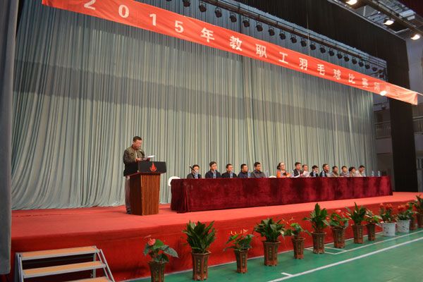 11月21日上午,青岛黄海学院2015年教职工羽毛球团体赛圆满落幕。校工会主席、大赛组委会主任刘志强,校工会副主席、大赛组委会副主任高菲,基础教学部副主任、大赛组委会副主任宋光春,组委会委员及裁判员、运动员代表出席闭幕式。