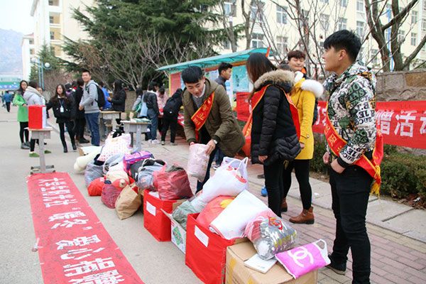 立冬之后,气温骤降,许多城市迎来了入冬以来的第一次大范围雨雪天气,考虑到寒冬即将来临,贫困山区孩子们缺衣少物的情况,我校大学生阳光社、大学生记者团全体同学自发来到校园樱花大道,将自己平时不用的学习用品、书籍、衣服,统一收集起来,分类装袋,并在信纸上写下对山区孩子们的温馨寄语。活动募捐完毕,同学们将募捐到的衣物通过中国邮政捐给青海玉树州。