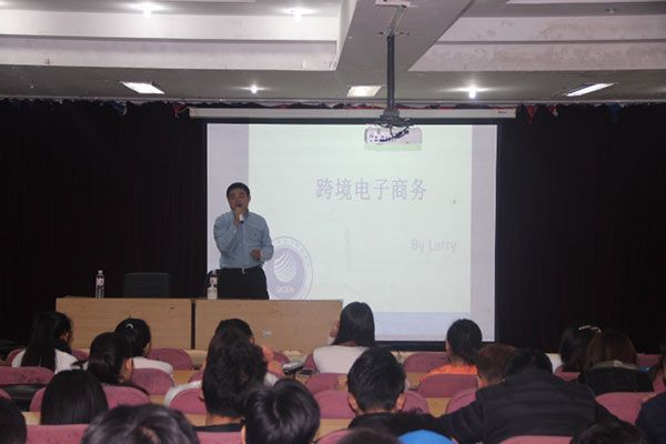 报告主题主要分为三个部分:电子、商务、跨境。刘总以自身在校所学专业和创办企业的经验为主导为同学们展开深刻的跨境电商与电商之路的讲解。首先从电子方面,以电子技术的应用、发展,互联网的发展历程讲述人们现在生活在电子世界中,一天也离不开它。其次从商务方面,从电子商务的认识、国内外电子商务发展现状、发展模式、发展趋势等方面,讲述了当今社会利用各种网络平台从事商业活动。同时还分析近几年中国电子商务交易规模一直保持较快增速。2014 年中国电子商务市场交易整体规模达到 12.3 万亿元,同比增长 21.3%。 其中,网络购物所占份额为 23%,交易规模为 2.8 万亿,同比增长 48.7%,在社会零售总额中的渗透率首次突破 10%。中国已成为交易额超过美国的全球最大网络零售市场。最后从跨境电子商务方面,以中国跨境电商行业发展政策分析和环境分析;中国跨境电商行业规模及发展现状;中国跨境电商平台建设及成功案例;中国跨境电商品牌建设&SoLoMo讲述中国发展跨境电子商务是一个必然的趋势。