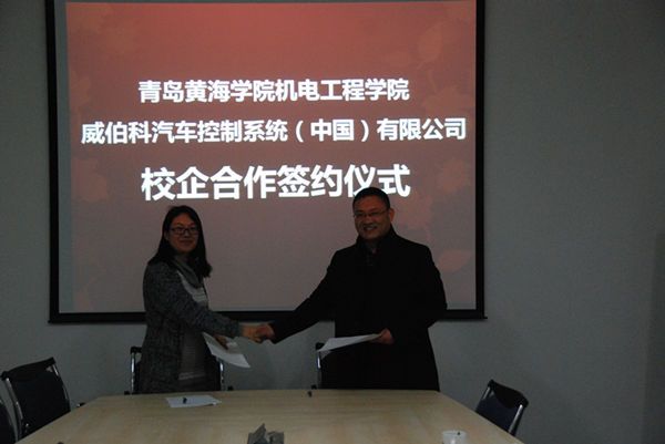 机电工程学院积极寻求校企合作,拓宽就业渠道,做好毕业生就业工作。1月6日上午,机电工程学院与威伯科汽车控制系统(中国)有限公司校企合作签约仪式在威伯科B201会议室举行。威伯科公司人力资源部经理王宁,招聘专员张磊,机电工程学院副院长岳庆超、就业老师王民华等参加了签约仪式。