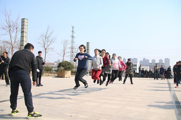 为营造和谐校园的良好气氛,加强校园文化建设,我校以三八妇女节为契机,于2016年3月11日下午两点半在知行楼孔子铜像前广场举行妇女节教师跳绳比赛。比赛开始前20分钟,各学院的老师都摩拳擦掌,跃跃欲试,抱着必胜的决心,紧张的做赛前准备,青春的激情与活力也同样洋溢在他们的欢声笑语中。