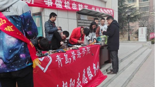 3月11日下午,参加志愿服务的同学们就开始了紧张的忙碌:从活动的申请备案、活动的宣传、相应维修工具设备的搬运、维修登记表以及活动横幅的制作等等每一个环节都进行了细致的准备。