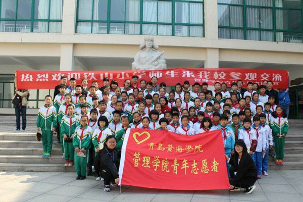 3月22日,我校管理学院青年志愿者协会志愿者们热情接待了来自支教对点小学——黄岛区铁山小学的师生。