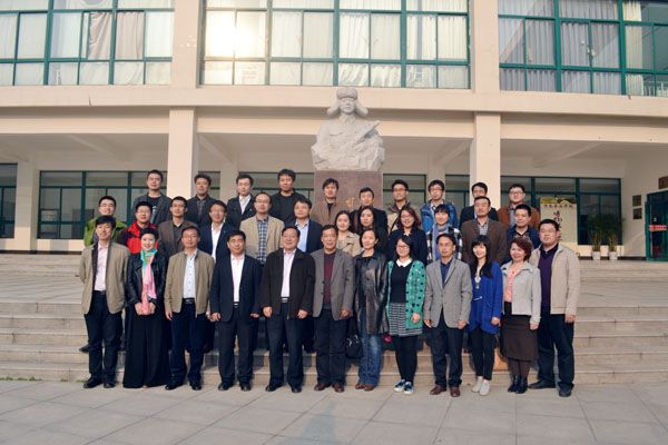 参观结束后,来访青年教师与我校领导在雷锋塑像前合影留念。