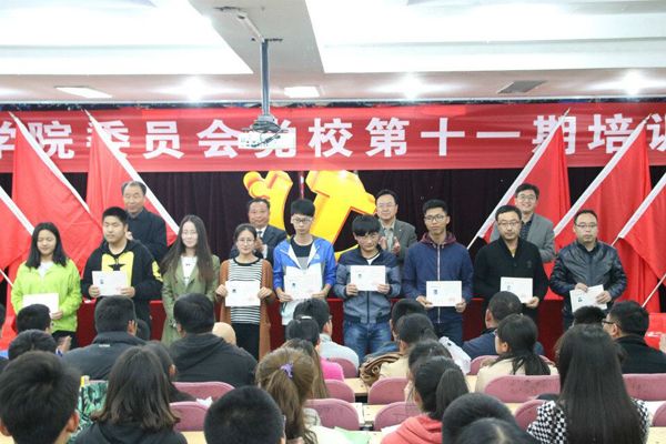 4月26日晚,我校党委党校第11期培训结业典礼在知新楼东学术报告厅举行。省委高校工委党建联络员、省教育厅督导专员王众臣,校党委副书记陈玉水,宋庆泽,党委委员,各党支部成员,党校教师以及全体结业学员共同参加了开班典礼。典礼由宋庆泽副书记主持。