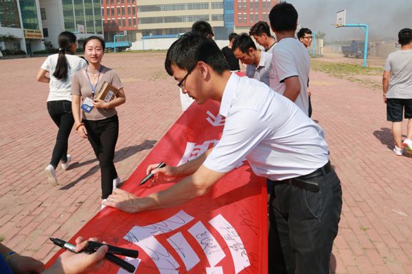 师生在横幅上签字