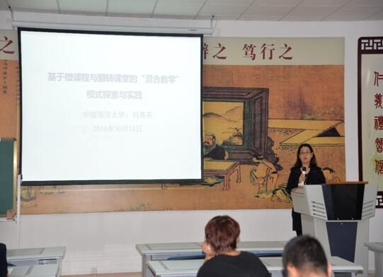 2016年10月12日下午,青岛黄海学院党外知识分子联谊会与国际电子商务学院联合邀请中国海洋大学刘尊英教授做《基于微课程与翻转课堂的“混合教学”模式探索与实践》交流讲座。讲座在知诚楼316儒商学堂举行,知联会部分理事、国际电商学院任课教师和管理学院部分教师代表参加。