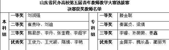 经过激烈的角逐,机电学院刘润强老师、基础教学部滕金聪老师分获本、专科组一等奖,将代表我校参加山东省民办高校第五届青年教师教学大赛。