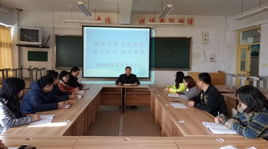 11月30日上午10时,财经学院在知新楼425教室召开主题为“解放思想、更新理念、服务大局、提升质量”的基层讨论大会。会议由学院院长杨荣本主持,学院副院长及各部门负责人参加了本次会议。