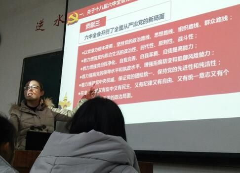 李斐首先带领大家学习了《中国共产党第十八届中央委员会第六次全体会议公报》全文,随后观看了党的十八届六中全会的相关视频,最后对十八届六中全会公报精神进行深入解读,明确要求我院全体党员在日常工作和学习中要在思想上、行动上与党中央保持高度一致,充分发挥示范带头作用,切实增强党性修养;全体学生干部要带头学习宣传全会精神,结合自身实际和主题班会将全会精神传达给每一位同学。