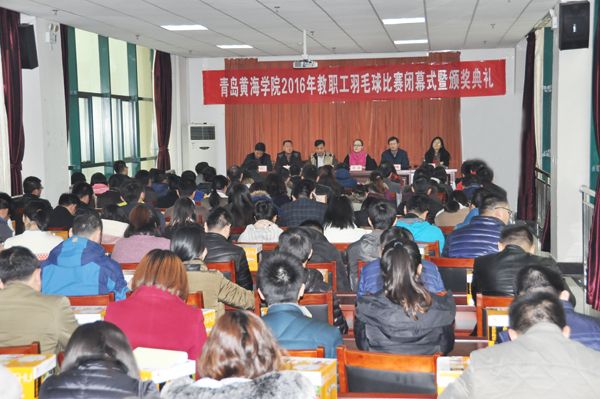 12月8日下午,由校工会主办、体育教学部分工会承办的青岛黄海学院“2016年教职工羽毛球赛”闭幕式暨颁奖典礼在行政楼801会议室举行。校工会主席刘志强、副主席高菲及大赛组委会成员出席闭幕式并为获奖代表队颁奖。