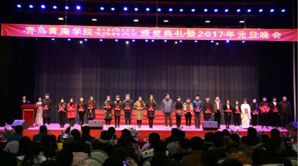 12月30日晚,我校在体育馆举行了“青岛黄海学院第三届宿舍文化节、第六届社团文化节颁奖典礼暨2017年元旦晚会”。学校领导与师生代表3000余人共同观看元旦晚会,并为在“社团文化节”和“宿舍文化节”活动中获奖的老师、同学颁奖。