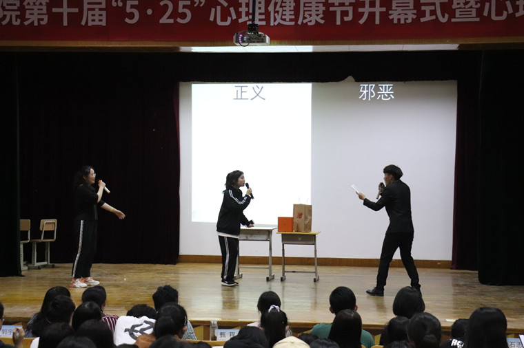 心理情景剧是以戏剧形式表达心理问题发生、发展和化解的办法。亲情,友情,爱情,师生情,情情交融,同学们将情景剧赋予了现实生活的意义。大学的宿舍生活,十指连心的亲情故事,网贷诈骗的恐怖面,校园暴力的阴暗面等,以一个个小故事的方式展现出来。台下掌声雷动,时而欢呼呐喊,时而又潸然泪下,时而提心吊胆,时而又义愤填膺,一幕幕的剧情带给同学们带来超乎情节的教育意义,用欢笑和泪水演绎着大学生的心理成长历程,给评委和观众们留下了深刻印象。