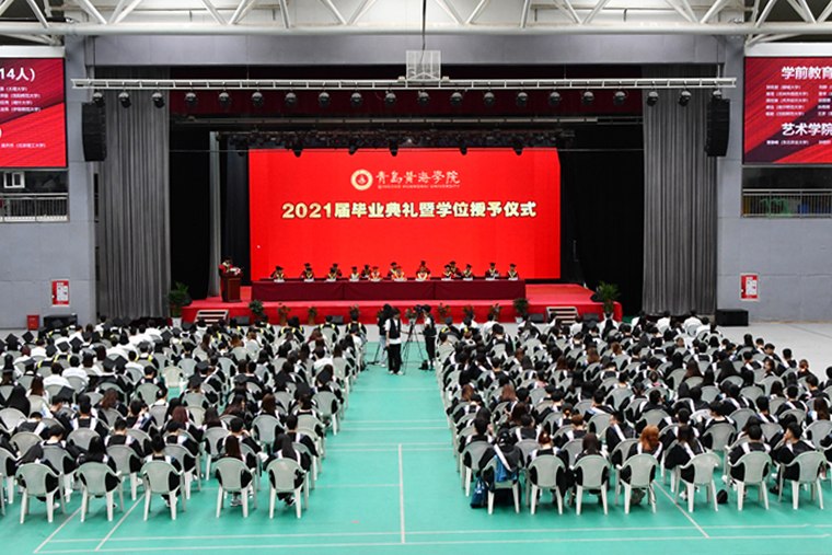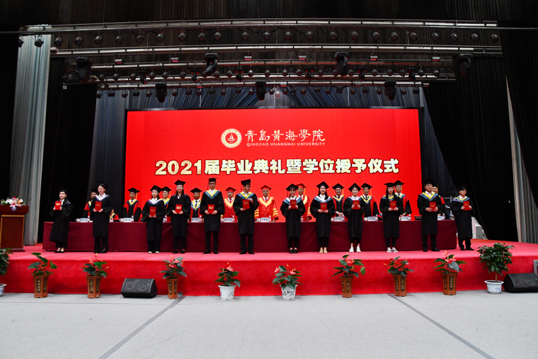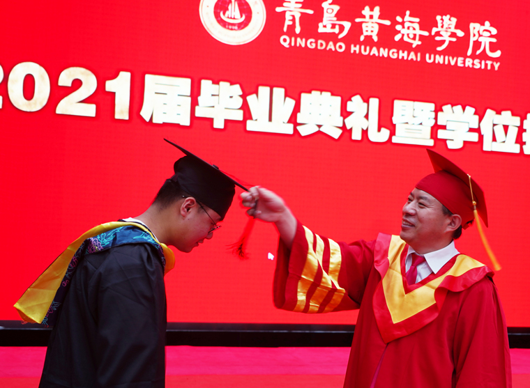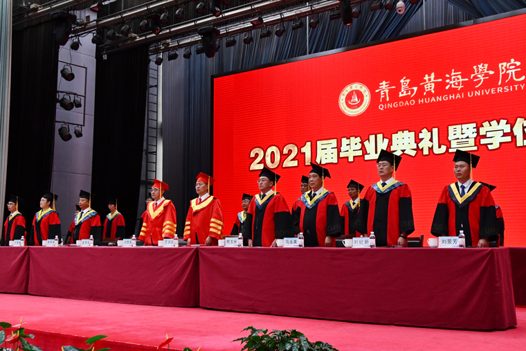 凤凰花开,骊歌响起。6月26日,青岛黄海学院2021年毕业典礼暨学位授予仪式在校体育馆隆重举行。