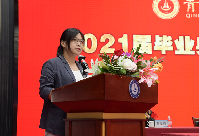 国际商学院王式晔作为教师代表为毕业生送上祝福。她殷切叮嘱毕业生踏入社会之后要拒绝“躺平”,放眼更大的世界,始终保持旺盛的学习劲头,做一个善良豁达的人,面对未来,都能手中有剑,心中有花,仗剑前行,披荆斩棘,无所畏惧。