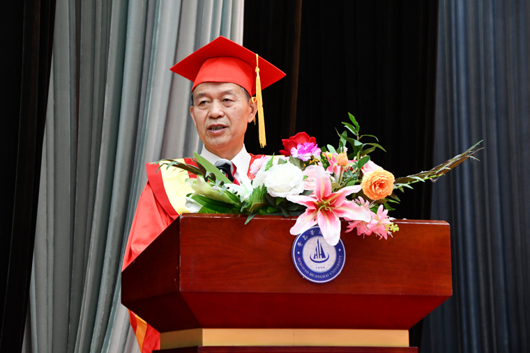 校长王渊明为毕业生致辞,他提到过去几年,毕业生们克服了学业困难,经历了疫情大考,接受了成长洗礼,经历了从青涩懵懂到成熟自信的华丽转身。