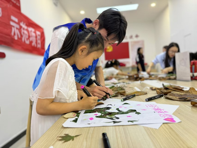 负责人向小朋友们详细介绍了收集到的各种树叶的外观和形状,并向他们展示了树叶生长的过程。随后,提供了绘画工具,在志愿者的协助下,小朋友们动手制作树叶画。凭借他们丰富的想象力和创造力,最终完成了各具特色的树叶画。活动最后展出了小朋友们的作品,并安排了一场分享会。通过这一过程,志愿者和小朋友们不仅充分认识和了解了植物,还提高了对自然环境的保护意识。