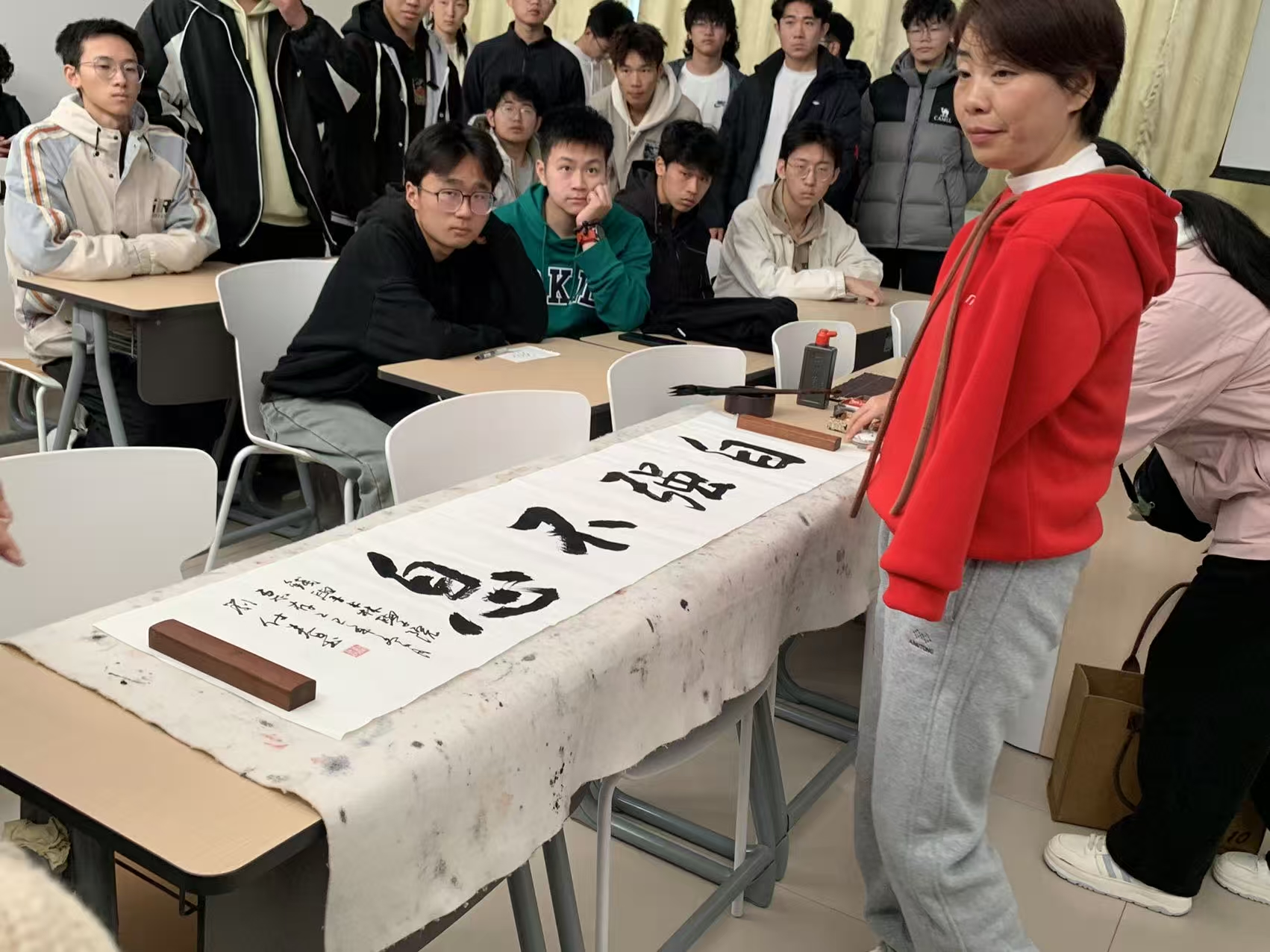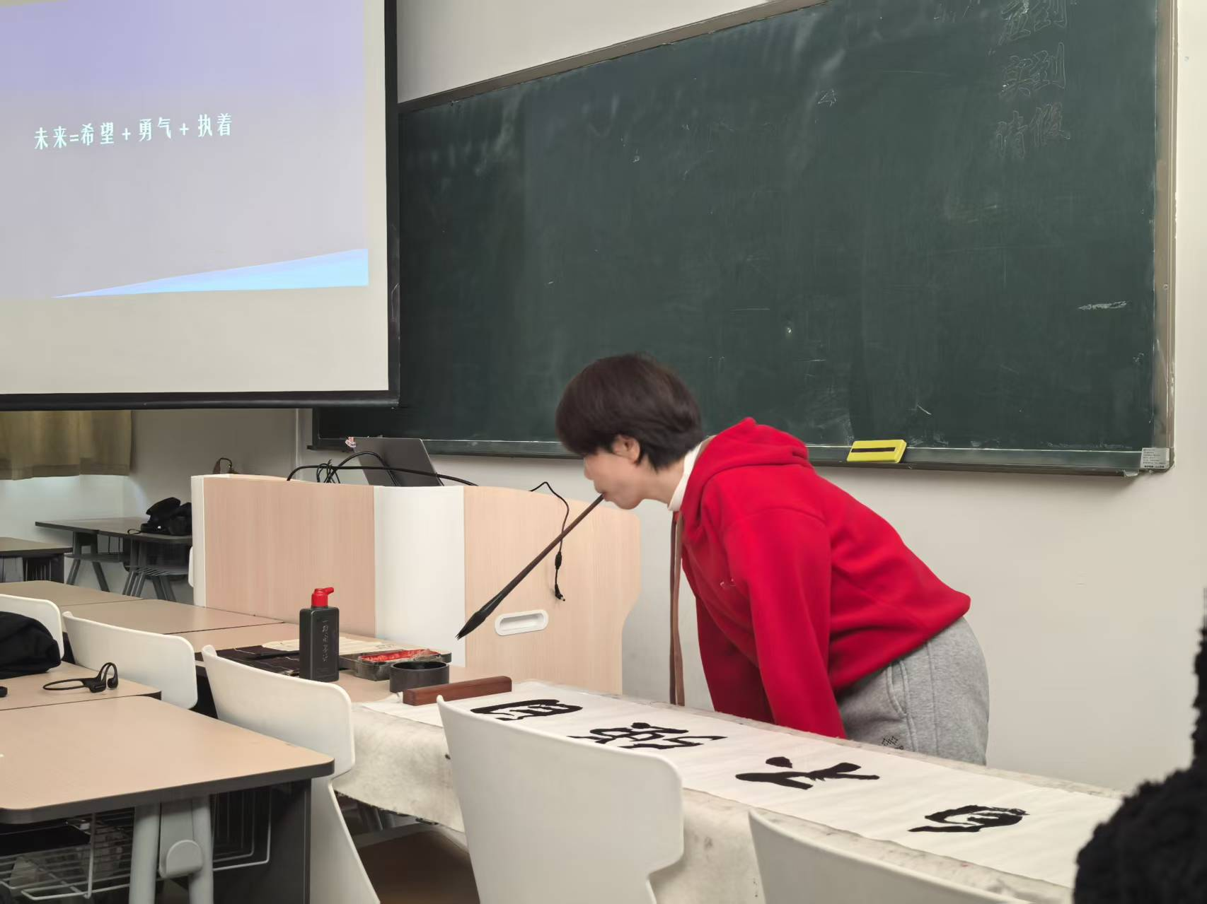 当报告接近尾声,刘老师以口衔笔,在宣纸上挥就"自强不息"四个大字时,全场肃然起敬。这一刻,笔墨已不仅是艺术的展现,更是一种精神的宣言。每一笔划都凝聚着生命的重量,每一个字都在诉说着不屈的信念。这一刻,传统文化中的人文精神与现代大学的育人理念交相辉映,展现出震撼人心的精神力量。