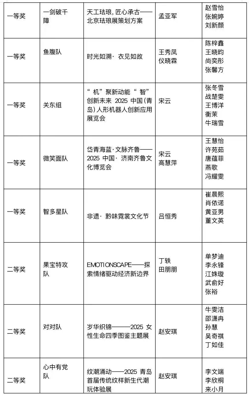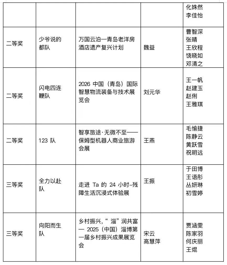 由中国贸促会商业行业委员会、中国国际商会商业行业商会、中国商业经济学会和中国会展经济研究会联合主办的2026年(新加坡)国际商务会展策划大赛中国地区选拔赛暨第十九届全国高校商业精英挑战赛会展创新创业实践竞赛山东省总决赛,经过理论知识赛、校赛、省赛等层层选拔,于2025年9月26日圆满落下帷幕。我校共19支参赛队伍在会展项目策划竞赛中获奖,其中“海底小纵队”等11支队伍更是拔得头筹,斩获一等奖。
