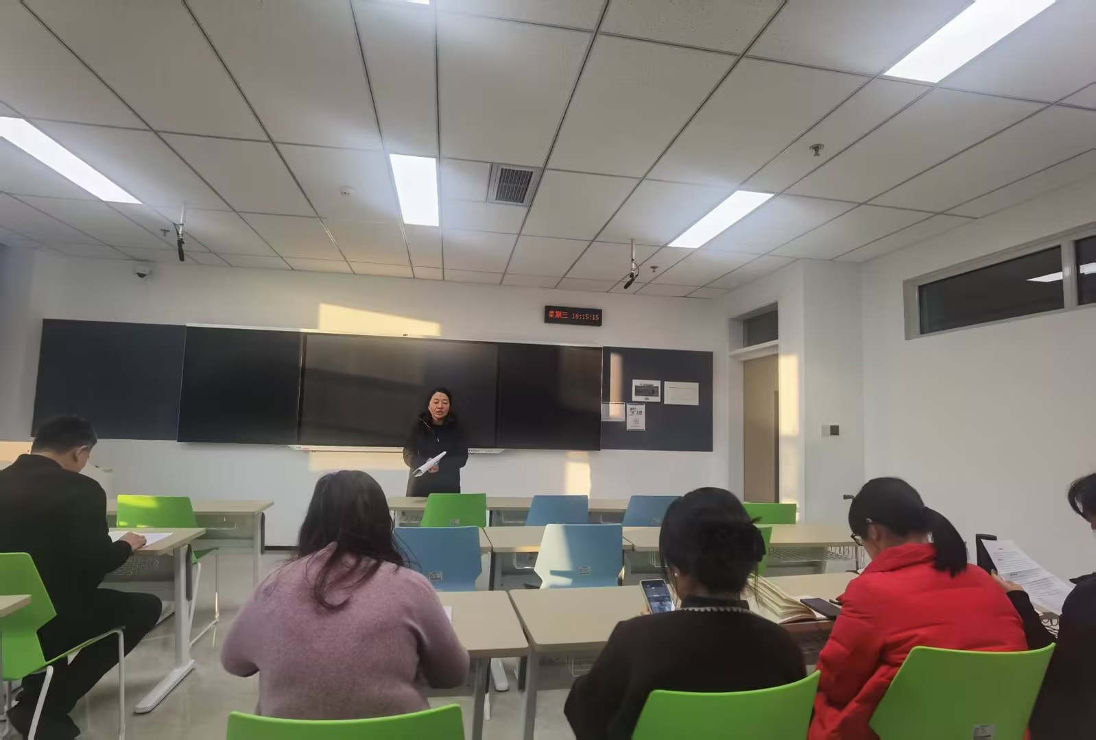 述职结束后,进入互评打分环节。教师们秉持公平、公正的原则,根据述职内容及日常工作表现,对同事进行综合评价并打分。这一环节不仅增强了教师间的相互了解,也为教研室后续的考核与激励机制提供了重要参考。