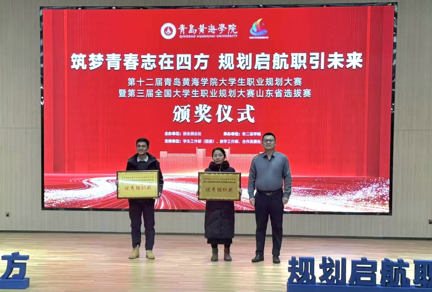 2025年12月24日,第十二届青岛黄海学院大学生职业规划大赛决赛暨第三届全国大学生职业规划大赛山东省选拔赛在知信楼306报告厅圆满落幕。国际商学院学子表现亮眼,王鸣宇荣获成长赛道一等奖,郗荣卓斩获成长赛道优胜奖,学院更凭借出色的组织协调能力荣获最佳组织奖。