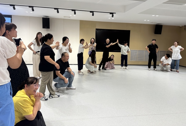 (图为心理中心教师带领辅导员进行室内活动)