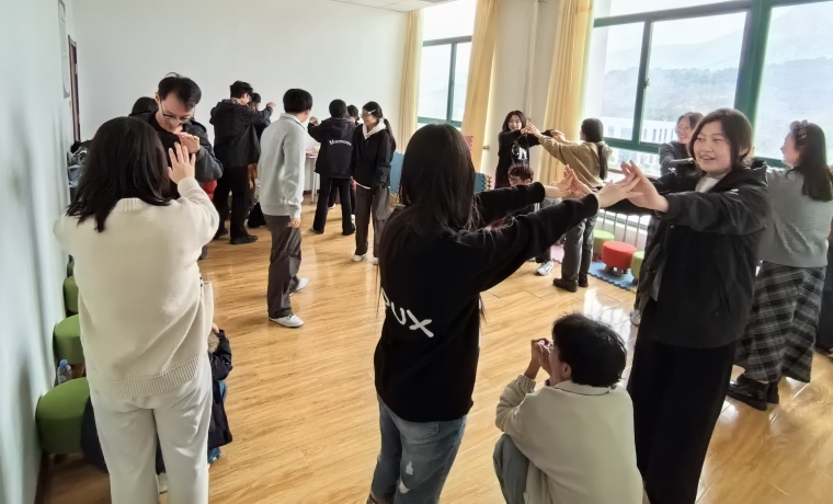 培训会下半场由心理中心王坤、李楷政两位老师带领各学院心理委员进行团体心理辅导培训。