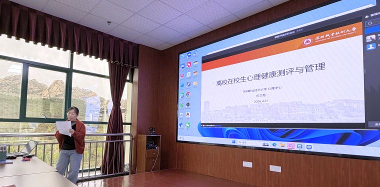 4月21日下午,大学生心理健康教育中心邀请深圳职业技术大学於文苑博士为我校各学院辅导员作心理主题培训。於文苑博士现任深圳职业技术大学心理健康教育咨询与研究中心专职教师,2020年获中国科学院大学基础心理学博士学位,以第一作者或通讯作者的身份在《NeuroImage》, 《Psychonomic Bulletin & Review》,《Cortex》 和《心理科学进展》上发表学术论文5篇。