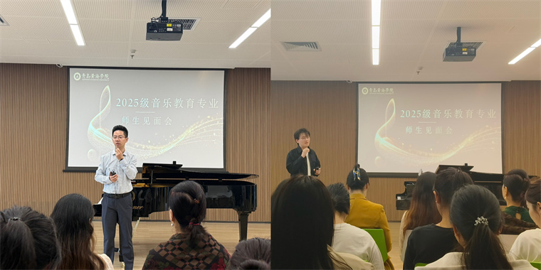 汇报伊始,院长助理张若愚发表致辞,向2025级音乐教育专业新生致以热烈欢迎与殷切期许。随后,左浩博主任逐一介绍音乐教育专业师资团队,详细阐述了专业的具体情况。