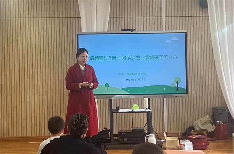 为做好学生的心理健康和家庭教育指导,教育学院婴幼儿教育教研室罗无双老师于2025年1122日11月29日、12月6日上午9:30-11:00,赴青岛市学生心理健康发展服务中心开展了三期“情绪管理”亲子绘本阅读沙龙活动。此次志愿活动由罗老师主讲,来自胶州市多所小学一年级、二年级的学生与家长共计30余人次参加活动。