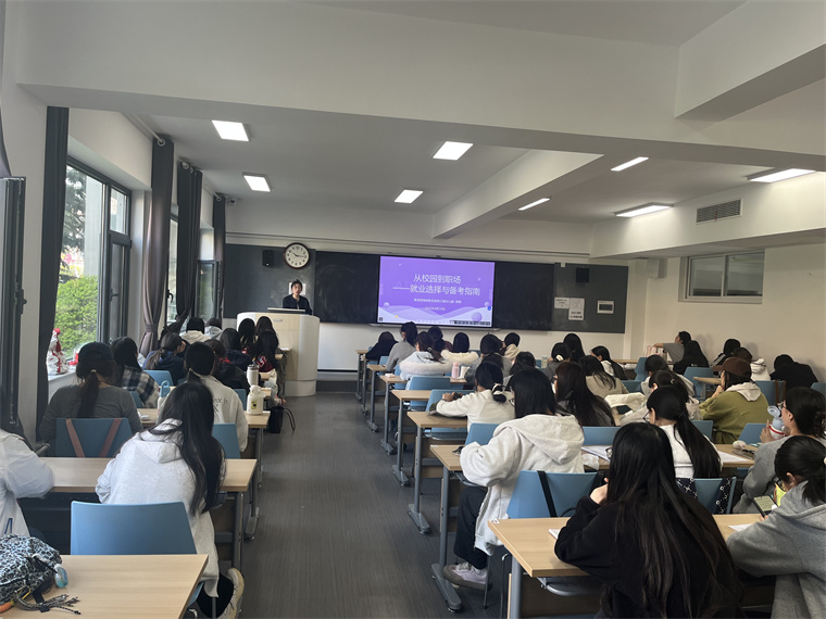 此次课程主题为《从校园到职场——就业选择与备考指南》。韩梅主任从考研、考公考编、自主创业三个维度展开讲解,为学生全面剖析不同就业路径的特点与要求。其中,针对教师编考试,她进行了重点且详细的阐述,涵盖报考条件、备考策略、考试流程等各个环节,让学生对教师编考试有了更清晰、深入的认识。