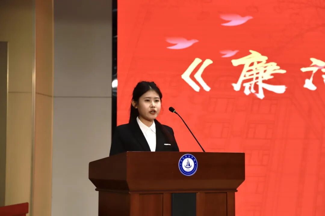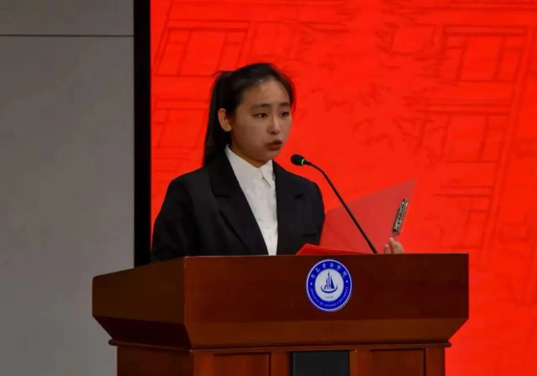 廉洁立身,初心致远。第十二届大学生社区委员会副主席苏响上台,宣读廉洁自律承诺书。她表示,廉洁自律是学生干部的立身之本、成事之基,更是服务同学的初心底色,这份承诺书不仅是全体社区学生干部的庄严誓言,更是一份沉甸甸的责任与担当,彰显了学生干部严于律己、服务师生的坚定决心。