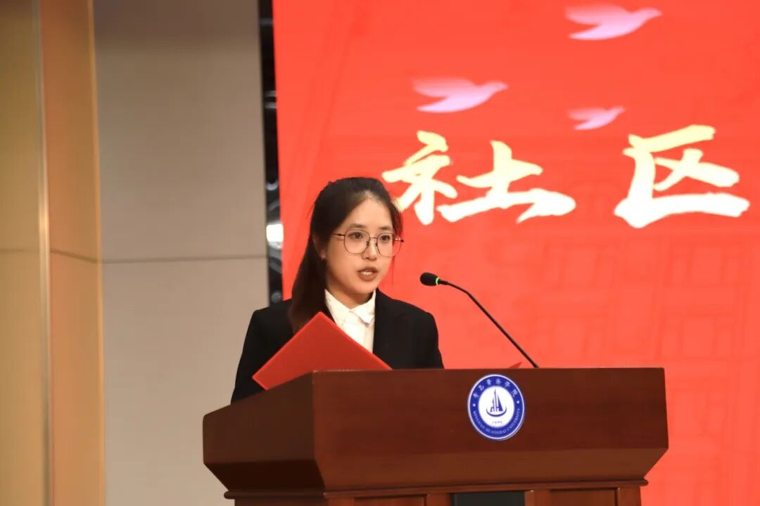 凝心聚力,共赴新约。大学生社区委员会主席孙静上台,分享了对本届社区文化节的展望与期许。她号召全体学生做有心的参与者、有责的守护者、有梦的追光者,以同心之力、奋进之姿,共同打造一场有温度、有内涵、有活力的文化盛宴,不负青春、不负韶华。