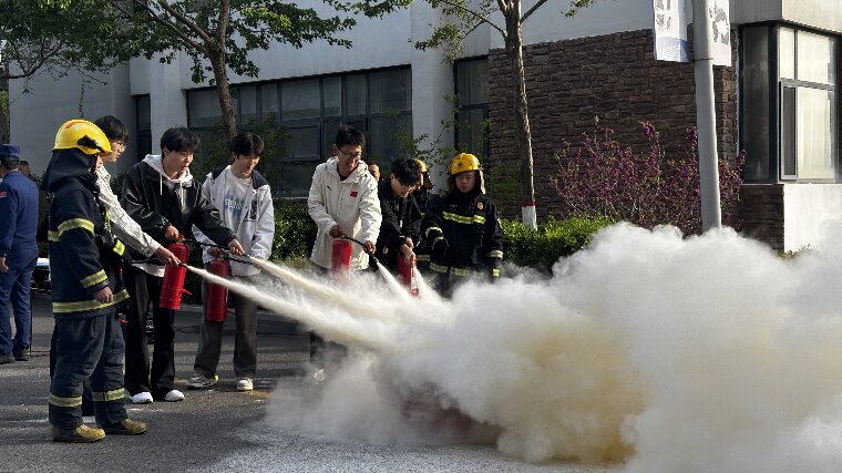 本次演练由学生工作部、安全管理处统筹组织,各二级学院、公寓服务中心、大学生社区委员会等单位协同落实,并特邀黄岛区消防救援大队、山东申昊工程技术有限公司专业人员到场全程指导。演练严格遵循“安全有序、实战实效”原则:演练前,各学院周密部署,明确疏散路线、人员分工与现场纪律;安全管理处全面排查消防设施,做好交通管控与现场警戒准备,并备齐无毒发烟装置、应急引导标识等物资,为演练顺利开展筑牢基础。