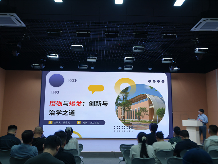 2025 年 9 月 17 日下午,知韵楼 05 虚拟演播厅内,影视学院院长薛永武教授以“磨砺与爆发:创新与治学之道”为主题,为全院教师带来一场兼具理论深度与实践指导意义的学术讲座,激励年轻教师要潜心治学,敢于创新。