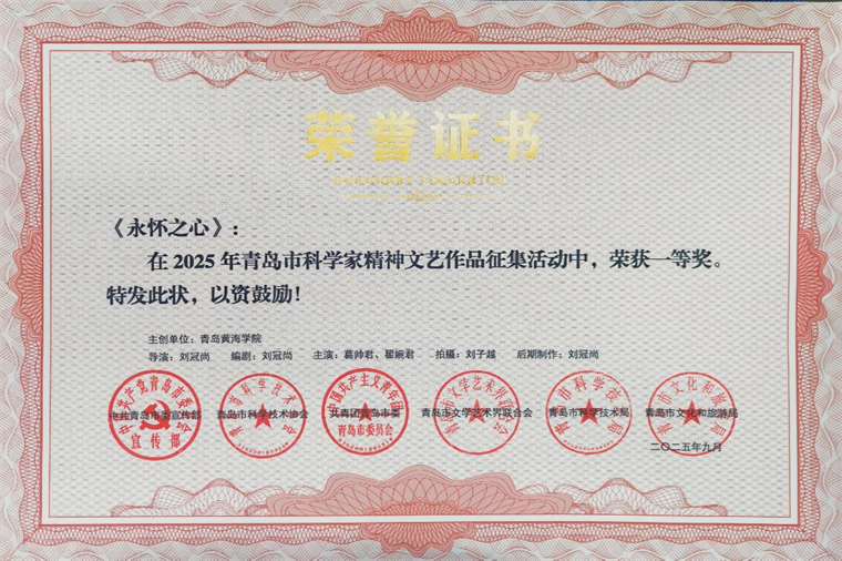 每一部作品都是一次精神洗礼,学院希望通过表演艺术让科学家精神可感可触、深入人心,更希望以课程思政为纽带,让学生在专业实践中传承文化基因、涵养家国情怀。此次获奖不仅是对师生创作成果的肯定,更是学院“思政+专业”融合教学模式的成功实践。未来,青岛黄海学院影视学院将继续以重大主题创作为载体,深化课程思政建设,强化师德师风引领,培养更多兼具专业素养、文化自觉与社会责任感的应用型影视人才,为弘扬科学精神、传播中华优秀文化正能量贡献黄海力量。