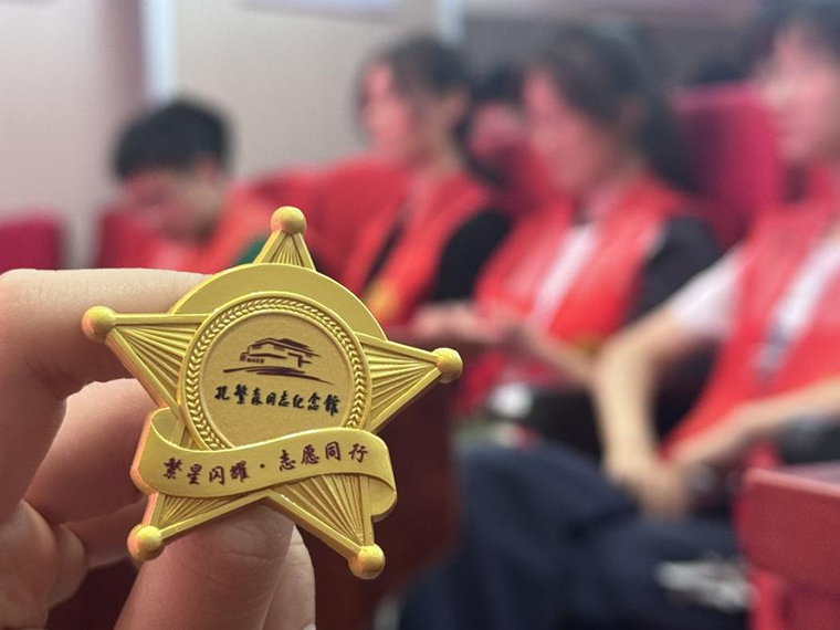 一枚枚精心设计的志愿者徽章,以象征孔繁森同志奋斗足迹的雪山青稞为底纹,中央醒目镌刻着孔繁森同志纪念馆建筑外观,下方环绕本次活动主题“繁星闪耀·志愿同行”。