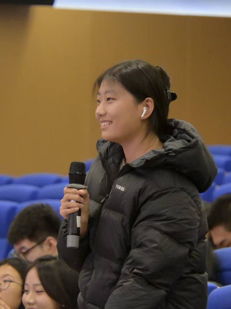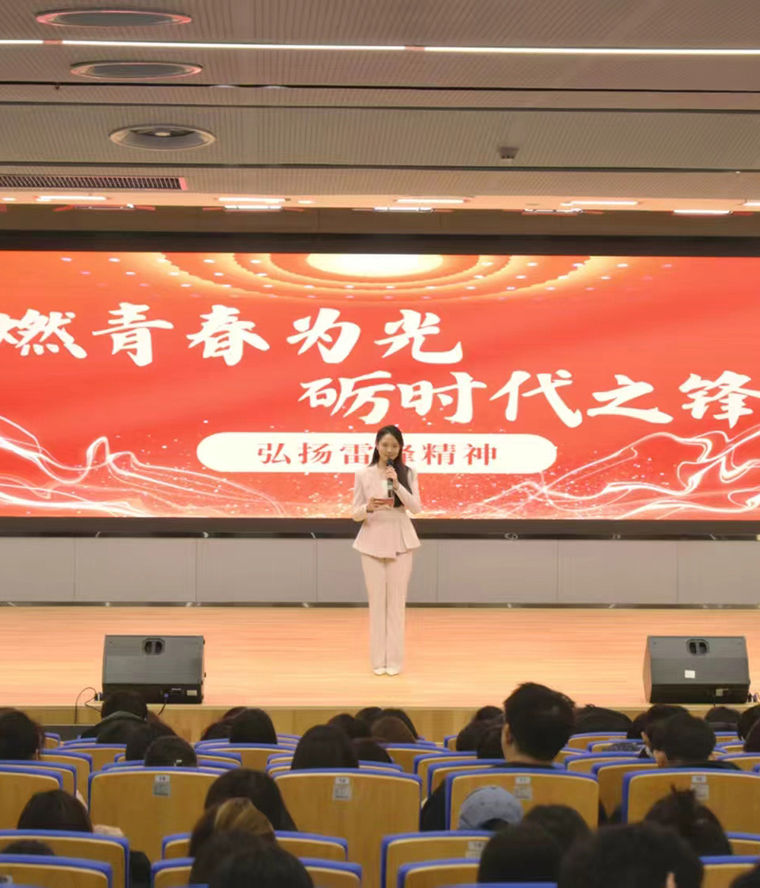 张梦寒同学以“雷锋精神何以永存”这一深刻问题为切入点,层层递进展开论述。她系统分析了雷锋精神在校园志愿服务、个人职业发展、社会公共责任等多维场景中的鲜活体现,从校园里的爱心帮扶、职场上的恪尽职守,到社会中的主动担当,全方位展现了精神传承的丰富内涵。她还特别鼓励同学们立足本职岗位、锤炼过硬本领,真正做到从小事做起、从身边做起,将雷锋精神内化于心、外化于行,让这份红色薪火在新时代赓续绵延、生生不息。