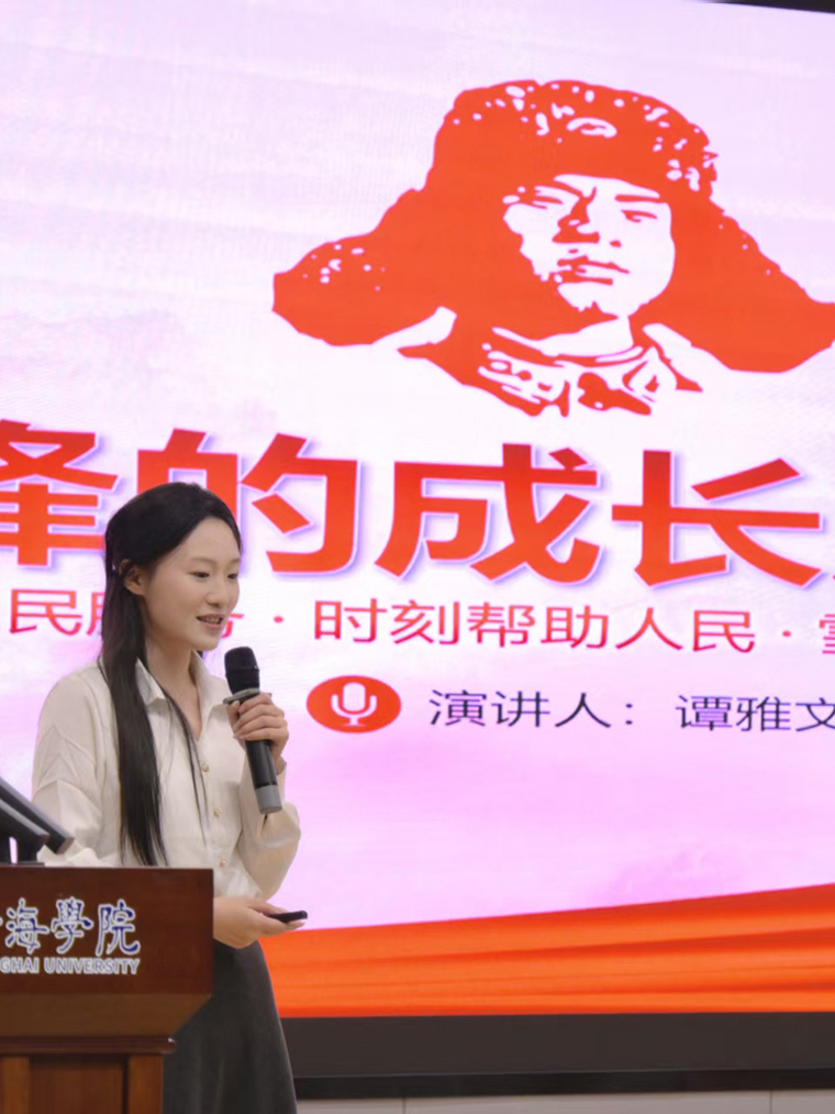 谭雅文同学以雷锋生平为引,着重分享了对这一精神丰碑的感悟。从旧社会的苦难底色到新社会的向阳成长,雷锋的人生轨迹,更像是一份将感恩化为奉献的生动答卷。在演讲中,她直言,雷锋早已不只是一个定格在历史中的名字,更是一种跨越时代的精神符号。这份精神的内核,是“全心全意为人民服务”的赤诚坚守,它提醒着我们,奉献从不是宏大的口号,而是融入日常的点滴选择,至今仍能为我们的生活与成长,注入温暖且坚定的力量。