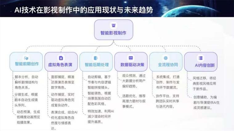 分享会最后,杨帅重点围绕AI赋能影视专业教学这一前沿主题,分享了专项研究与深度思考。他系统梳理了AI技术在智能前期创作、虚拟角色表演、智能后期处理、数据驱动决策等影视制作全流程的应用现状与未来趋势,结合智能剧本生成、AI辅助剪辑、虚拟角色合成等实操案例,讲解了AI工具对影视创作流程的优化价值。同时,他也分析了AI技术给影视教育带来的机遇与挑战,分享了“问题导向、需求驱动、跨学科融合、实践验证”的科研选题思路,提出了将AI技术与影视专业教学深度融合、推动传统教学模式数字化转型的具体构想。