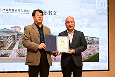 讲座伊始,薛永武院长代表影视学院对孙书文教授的到来表示热烈欢迎。薛院长表示,孙教授在文艺理论与文学批评领域深耕多年,学术造诣深厚,他的到来为学院师生提供了难得的学习交流机会。薛院长强调,在AI技术飞速发展的今天,重新探讨“一剧之本”的核心竞争力,对于影视学院的师生而言恰逢其时。在全场师生的见证下,薛永武院长为孙书文教授颁发聘书,正式聘请孙教授担任影视学院客座教授,期待未来双方在学科建设、学术研究等方面开展更加深入的合作。讲座伊始,薛永武院长代表影视学院对孙书文教授的到来表示热烈欢迎。薛院长表示,孙教授在文艺理论与文学批评领域深耕多年,学术造诣深厚,他的到来为学院师生提供了难得的学习交流机会。薛院长强调,在AI技术飞速发展的今天,重新探讨“一剧之本”的核心竞争力,对于影视学院的师生而言恰逢其时。在全场师生的见证下,薛永武院长为孙书文教授颁发聘书,正式聘请孙教授担任影视学院特聘教授,期待未来双方在学科建设、学术研究等方面开展更加深入的合作。