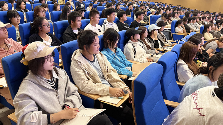 在讲座过程中,同学们全神贯注,认真聆听王延龙老师的讲解。报告厅内秩序井然,同学们凝神思考、认真记录,将重要的知识点和建议详细地记在笔记本上,为后续的学业和职业规划提供参考。这种专注和投入,充分展现了同学们对自身发展的高度重视和对未来的积极规划。