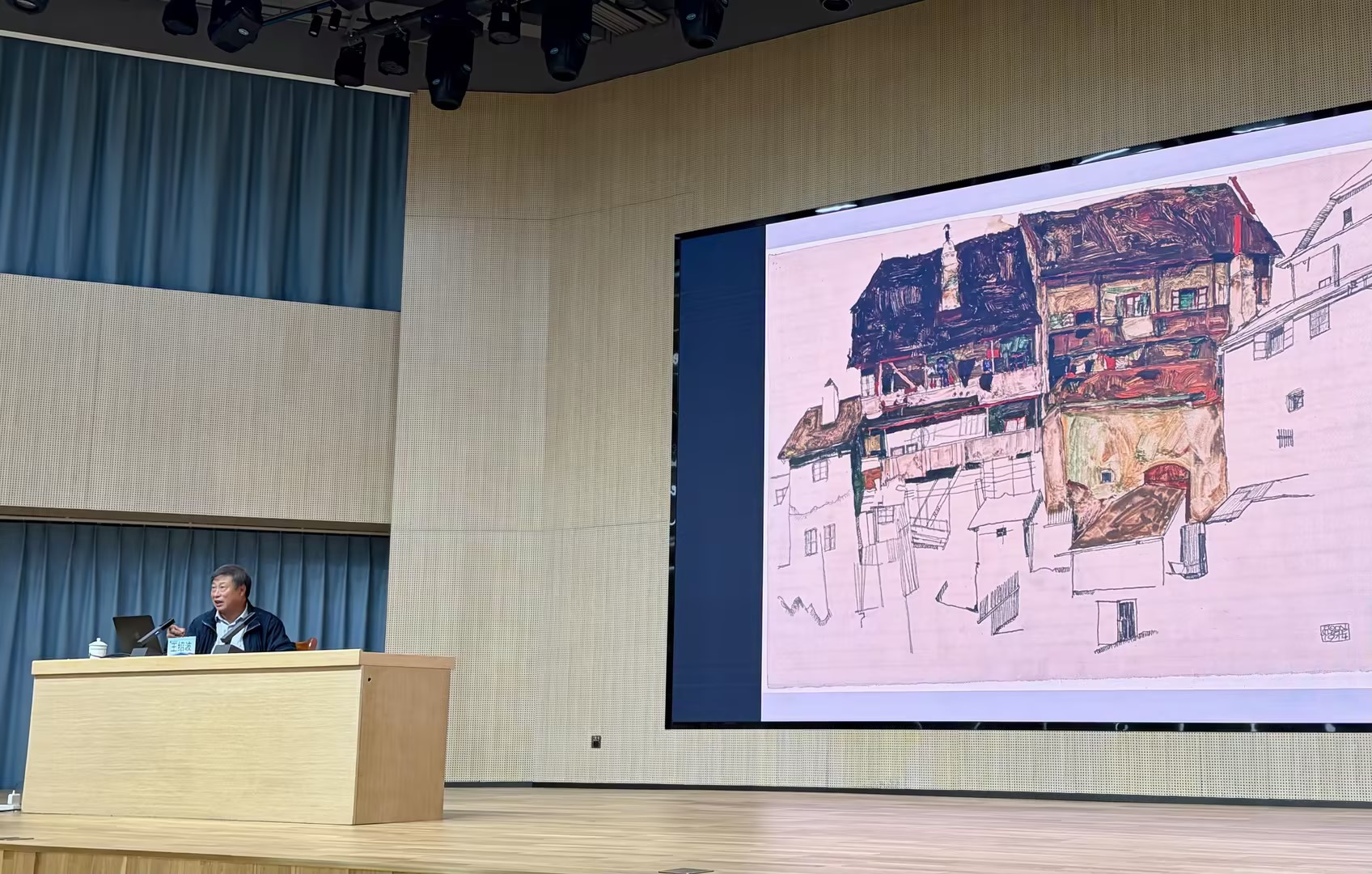 讲座伊始,王绍波教授以深厚的学术底蕴与丰富的艺术阅历,带领师生一同回顾20世纪以来具象绘画的发展进程。他从奥地利表现主义画家埃贡·席勒谈起,分析其作品中形体的扭曲与心理张力;又延伸至美国现实主义代表安德鲁·怀斯,讲述他以细腻笔触描绘人性孤寂的艺术语言。通过多位大师的艺术比较,王教授引导大家理解“写实”并非技法的再现,而是一种精神的探寻,是艺术家对现实与自我心境的表达。