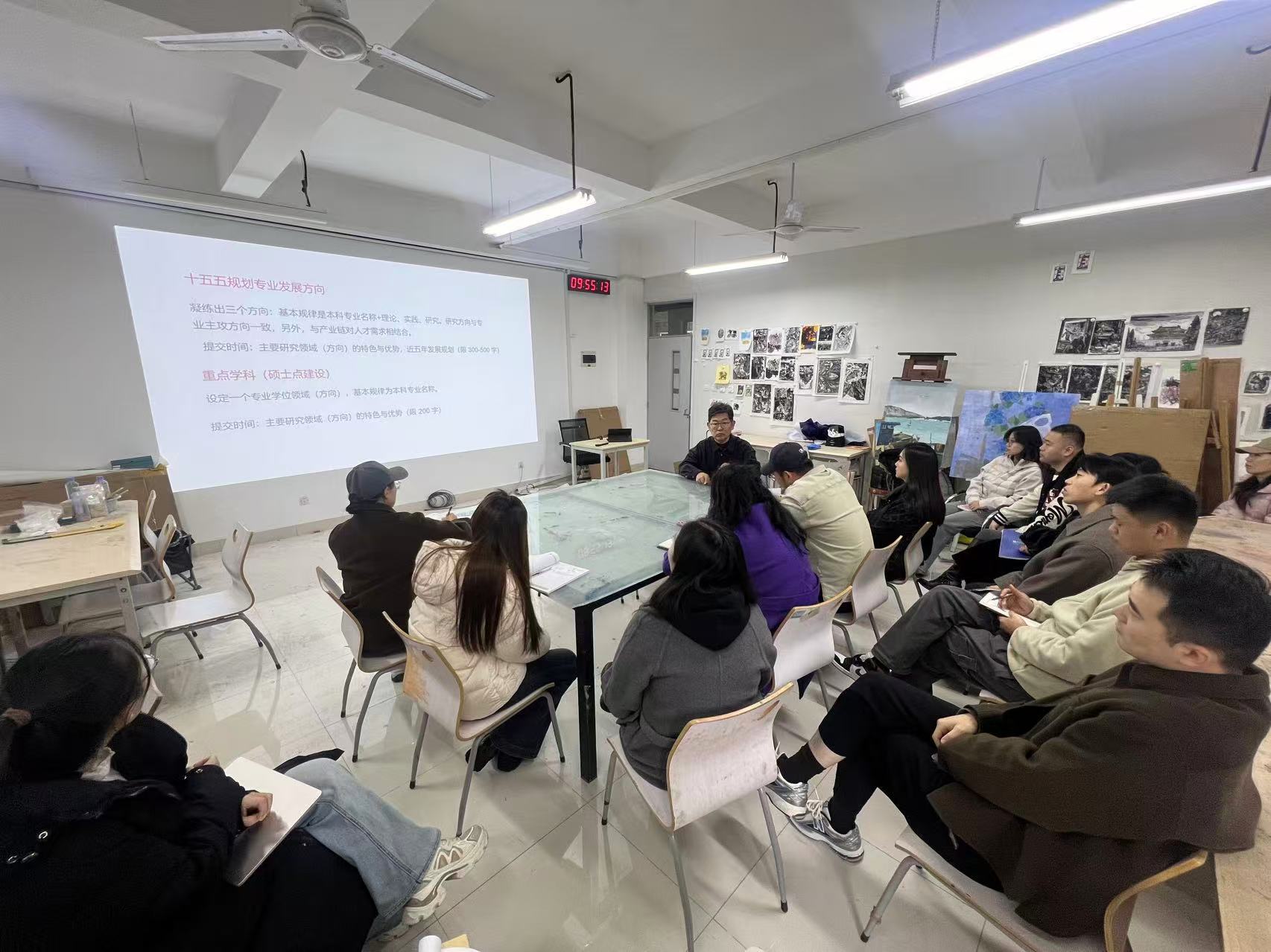 为精准对接学校“十五五”规划发展目标,凝聚学科建设共识,明确绘画与书法专业发展路径,11月17日,青岛黄海学院设计与美术学院院长邵力民走访绘画系与书法系,并召开座谈会。院长邵力民教授亲自主持会议并作专题指导,绘画系与书法系全体教师参会,围绕专业方向凝练、重点学科建设等关键议题展开深度研讨。