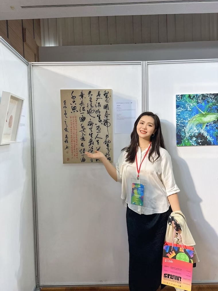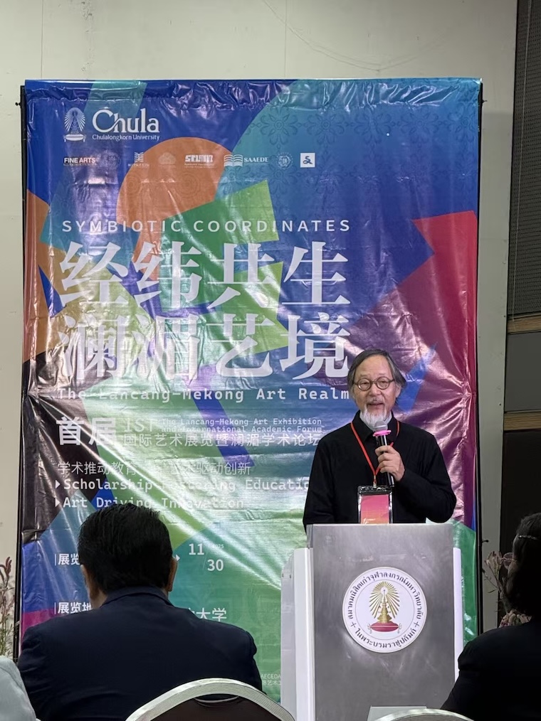 为热烈庆祝中泰建交50周年,积极响应国家“一带一路”倡议,推动中泰两国艺术人文交流迈向新高度,助力澜湄区域文化合作蓬勃发展,由东南亚教育文化交流发展会(SAECEDA)、闽江学院美术学院、泰国朱拉隆功大学共同发起的“经纬共生·澜湄艺境”国际艺术展览暨学术论坛,于2025年11月28日至30日在泰国曼谷朱拉隆功大学盛大举行。青岛黄海学院设计与美术学院书法系教师侯怡作品参展并出席参加。